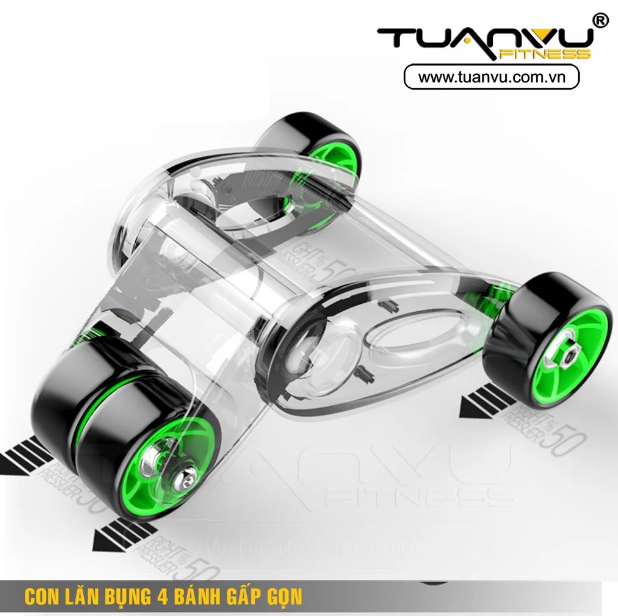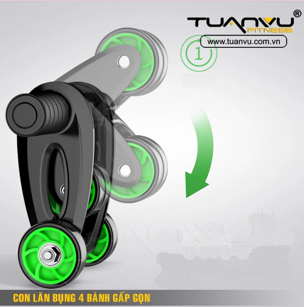- Con lăn bụng 4 bánh gấp gọn được sử dụng để làm săn chắc cánh tay, vai và bụng. Sản phẩm này là một trong những loại lăn bụng nặng nhất trên thị trường, với thiết kế vòng bi công nghiệp.