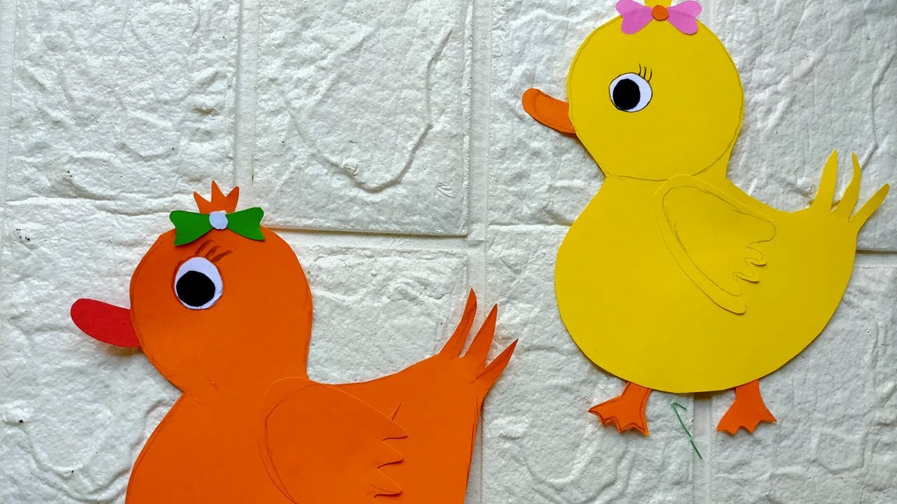 Bước 4: Làm đầu vịt bằng cách lấy kéo cắt giấy màu màu đỏ hình tròn nhỏ.