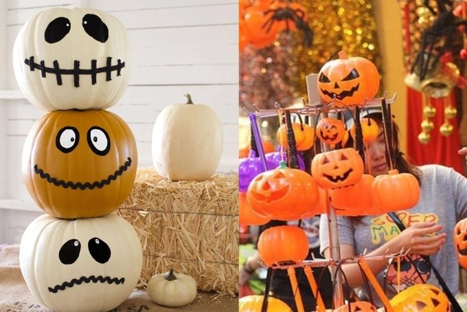 Bước 3: Đợi sơn khô thì trang trí thêm cho giống hình quả bí ngô.