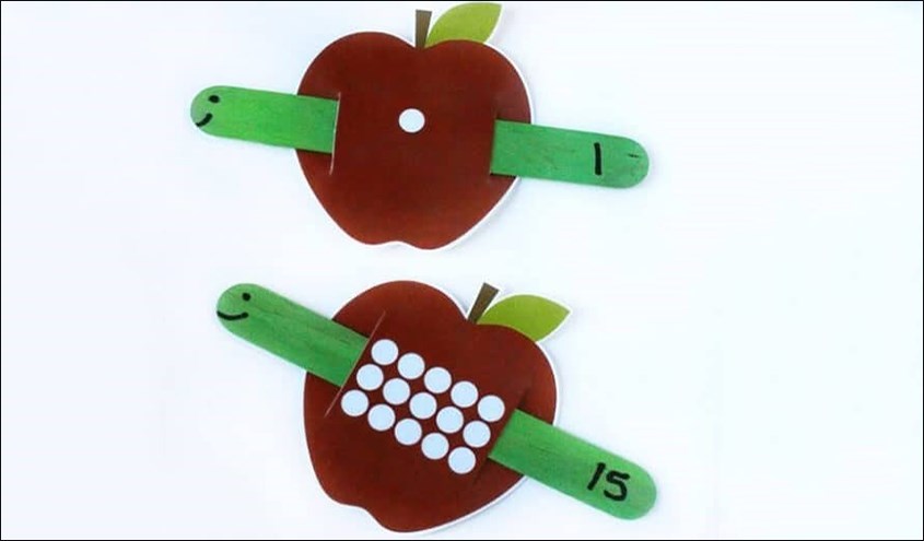 Bước 4: Dùng bút vẽ chấm bi lên quả táo tương ứng với con số vừa vẽ trên chú sâu.