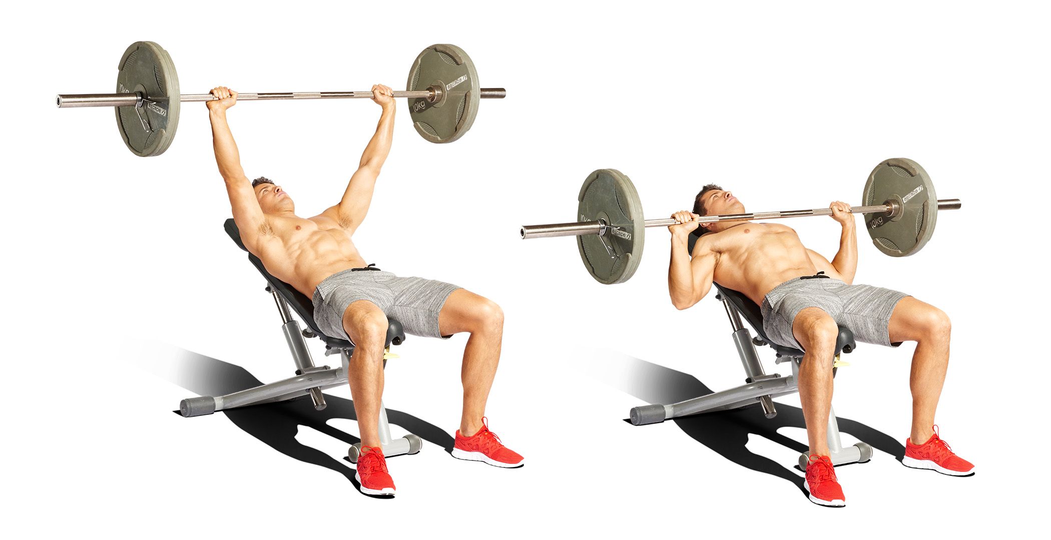 - Barbell Bench Press (Đẩy tạ đòn trên ghế): Bài tập có tác dụng siết cơ vùng ngực và các vị trí khác như cánh tay, khuỷu tay, tay sau và vai.