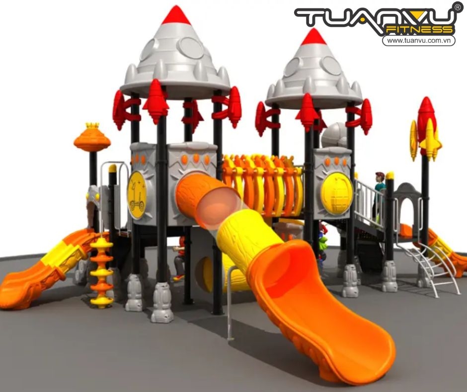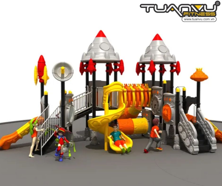 Đây là một khu vui chơi ngoài trời theo chủ đề tên lửa, mang đậm phong cách phiêu lưu vũ trụ với nhiều yếu tố khoa học viễn tưởng và tương lai. Cấu trúc này có màu cam, vàng và xám bạc tươi sáng. Trên đỉnh có hình đầu tên lửa, giống như một căn cứ không gian bí ẩn. Nó cho phép trẻ em khám phá vũ trụ trong trò chơi và khơi gợi trí tưởng tượng của chúng.