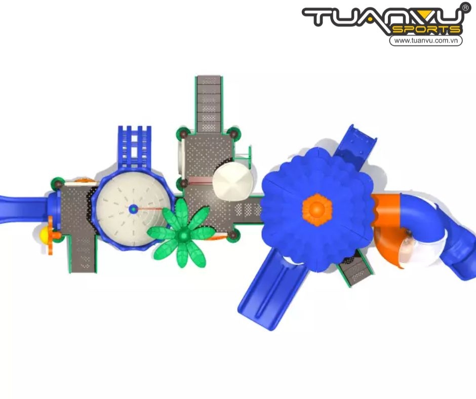 Ống trượt xoắn ốc ở tầng hai là một dự án không thể bỏ qua cho những bé cá tính. Thiết kế cong sẽ mang lại cảm giác nhanh nhẹn và thú vị hơn. Ống trong suốt sẽ thay đổi theo ánh sáng, mang đến trải nghiệm thị giác mới lạ. Khu vực chờ là khu vực được bao quanh bởi các tấm cửa sổ bong bóng. Trẻ em sẽ nhận thấy sự thay đổi của âm thanh trong suốt quá trình thảo luận, điều này sẽ kích thích tư duy của các bé. Đừng lo lắng, dù trời nắng hay mưa, luôn có mái che chắn tia cực tím và mưa cho trẻ em.