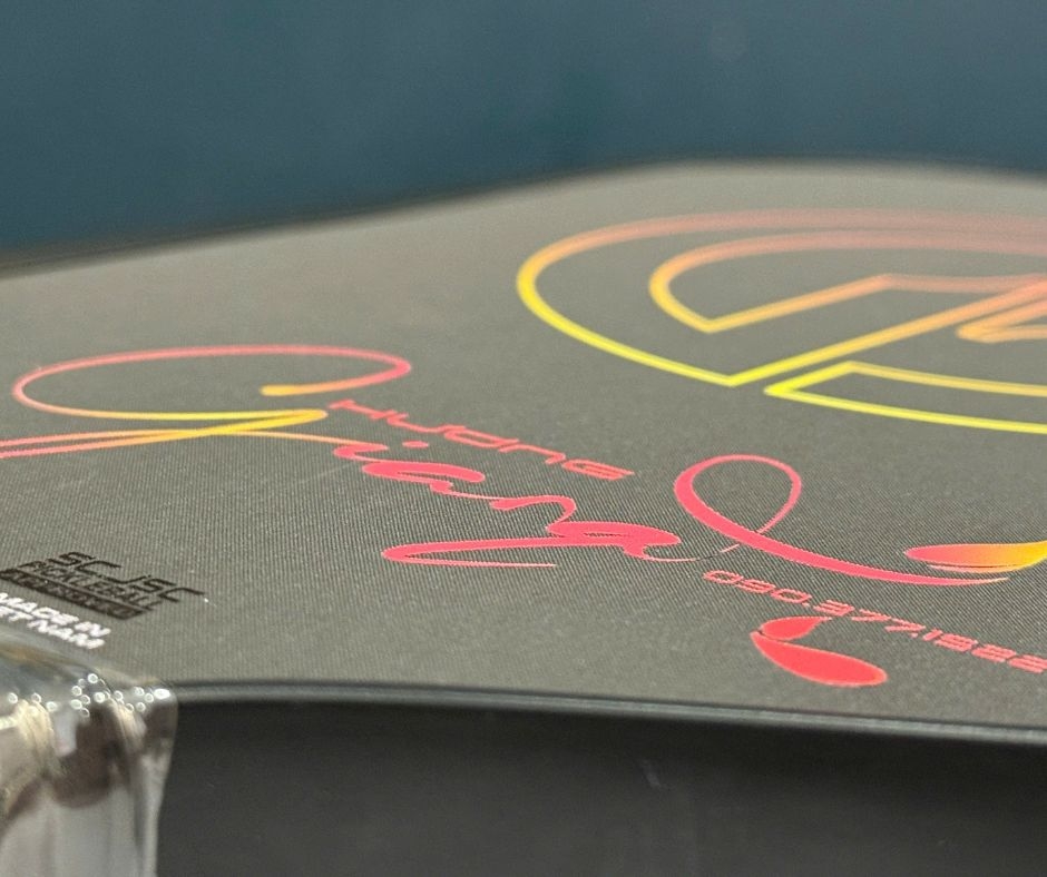 - Tên và dấu ấn cá nhân được khắc họa tinh tế, biến chiếc vợt không chỉ là dụng cụ thể thao, mà còn là tác phẩm độc bản mang đậm dấu ấn riêng.